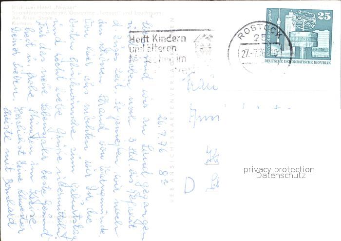 72255524 alte Postkarte Warnemuende Ostseebad Hotel Neptun Strandpromenade Gaststaette Teepott Leuchtturm Alter Strom Kurhaus postalisch gelaufen Erhaltung siehe scans KatCode: 11110013003000