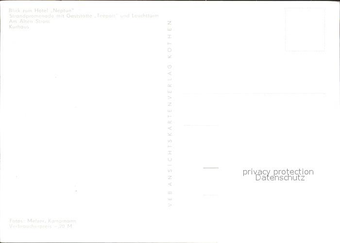 72329479 Warnemuende Ostseebad Hotel Neptun Strandpromenade Gaststaette Teepott Leuchtturm Alter Strom Kurhaus postalisch nicht gelaufen Erhaltung siehe scans KatCode: 11110013003000