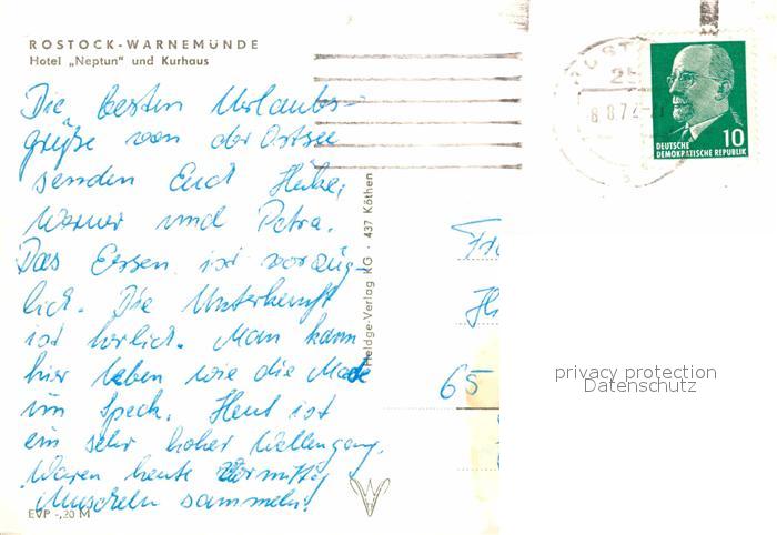 72814187 alte Postkarte Warnemuende Ostseebad Hotel Neptun und Kurhaus postalisch gelaufen Erhaltung siehe scans [FriedD77] KatCode: 11110013003000