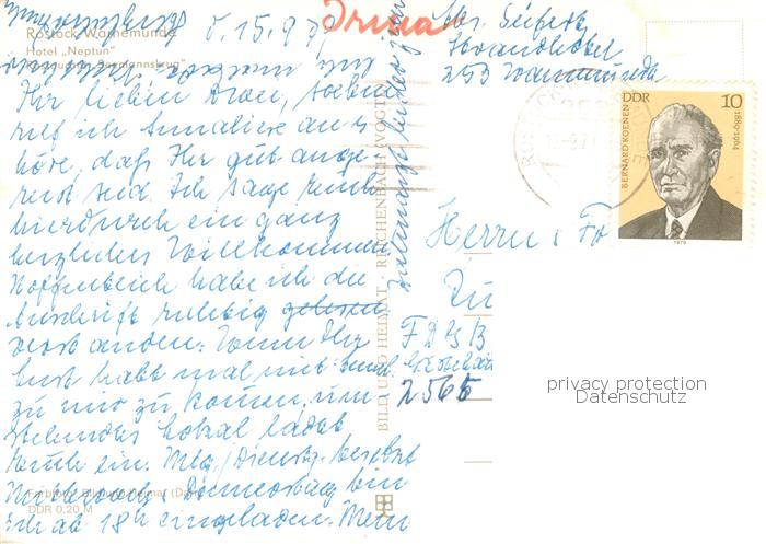 73783783 alte Postkarte Warnemuende Ostseebad Hotel Neptun postalisch gelaufen Erhaltung siehe scans [FriedD77] KatCode: 11110013003000