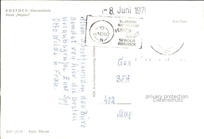72381929 alte Postkarte Warnemuende Ostseebad Hotel NeptunPromenade postalisch gelaufen Erhaltung siehe scans KatCode: 11110013003000