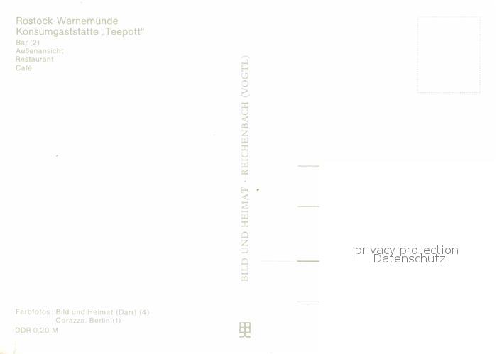 72727204 Warnemuende Ostseebad Konsumgaststaette Teepott Bar Restaurant Cafe postalisch nicht gelaufen Erhaltung siehe scans [FriedD77] KatCode: 11110013003000