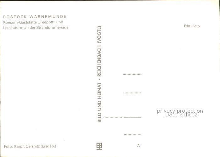 72315017 Warnemuende Ostseebad Konsumgaststaette Teepott Leuchtturm Strandpromenade postalisch nicht gelaufen Erhaltung siehe scans KatCode: 11110013003000