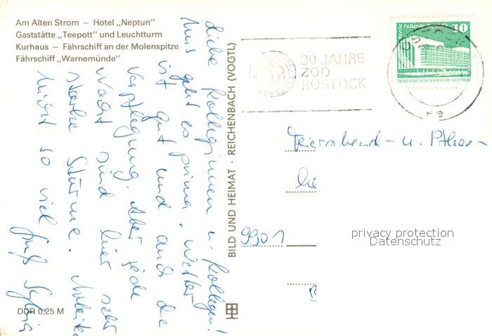 73036780 alte Postkarte Warnemuende Ostseebad Kurhaus Hotel Neptun Faehrschiff Leuchtturm postalisch gelaufen Erhaltung siehe scans [KathaD81] KatCode: 11110013003000