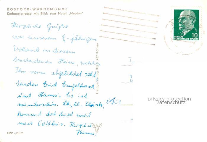 72644628 alte Postkarte Warnemuende Ostseebad Kurhausterrasse Hotel Neptun postalisch gelaufen Erhaltung siehe scans [AndreD76] KatCode: 11110013003000