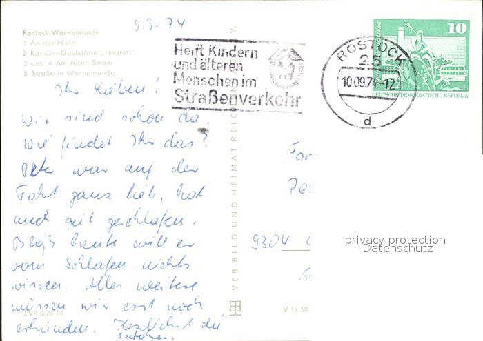 72409420 alte Postkarte Warnemuende Ostseebad Leuchttuerme hafen Strassenpartie postalisch gelaufen Erhaltung siehe scans KatCode: 11110013003000