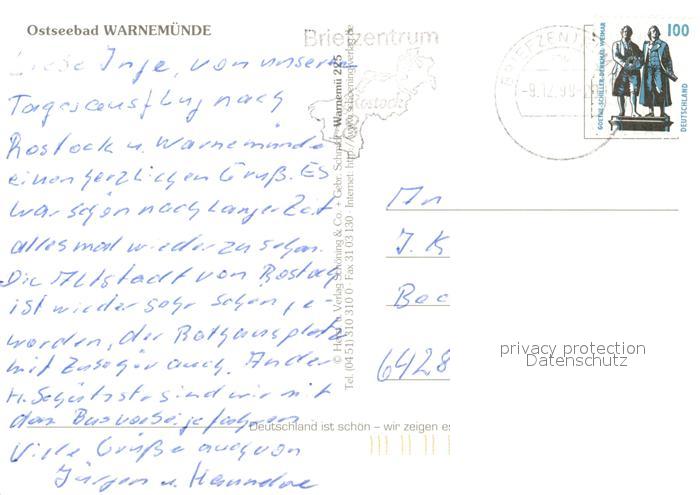 73182349 alte Postkarte Warnemuende Ostseebad Leuchtturm Faehre Finncarriers Hotel Neptun postalisch gelaufen Erhaltung siehe scans [NatalD47] KatCode: 11110013003000