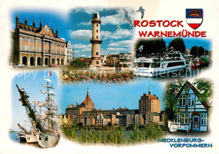 72641195 alte Postkarte Warnemuende Ostseebad Leuchtturm Fahrgastschiff Alter Strom Altstadt Segelschiff Moewen postalisch gelaufen Erhaltung siehe scans [FriedD77] KatCode: 11110013003000