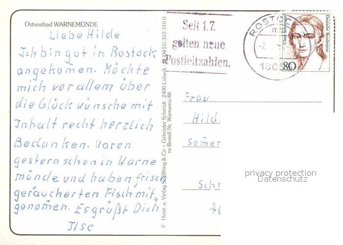 72861837 alte Postkarte Warnemuende Ostseebad Leuchtturm Hotel Altstadt Hafen Faehre postalisch gelaufen Erhaltung siehe scans [AndreD76] KatCode: 11110013003000