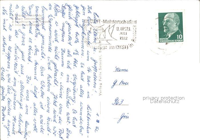 72477139 alte Postkarte Warnemuende Ostseebad Leuchtturm Interhotel Neptun postalisch gelaufen Erhaltung siehe scans KatCode: 11110013003000