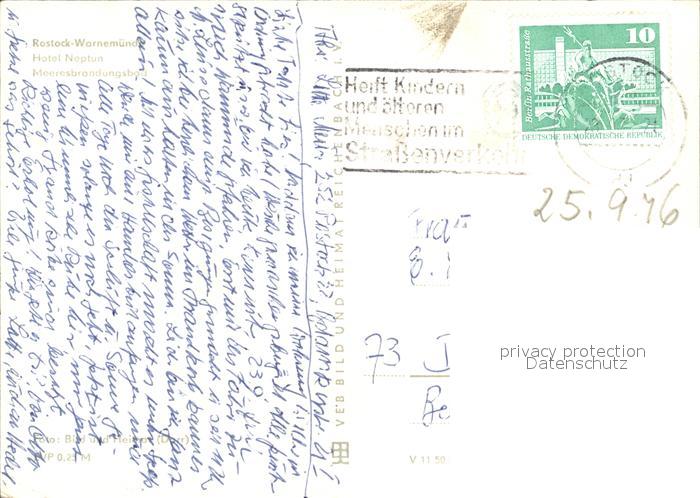 72080140 alte Postkarte Warnemuende Ostseebad Meeresbrandungsbad Hotel Neptun postalisch gelaufen Erhaltung siehe scans KatCode: 11110013003000
