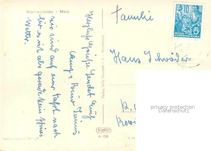 72645949 alte Postkarte Warnemuende Ostseebad Mole postalisch gelaufen Erhaltung siehe scans [LiesaD40] KatCode: 11110013003000