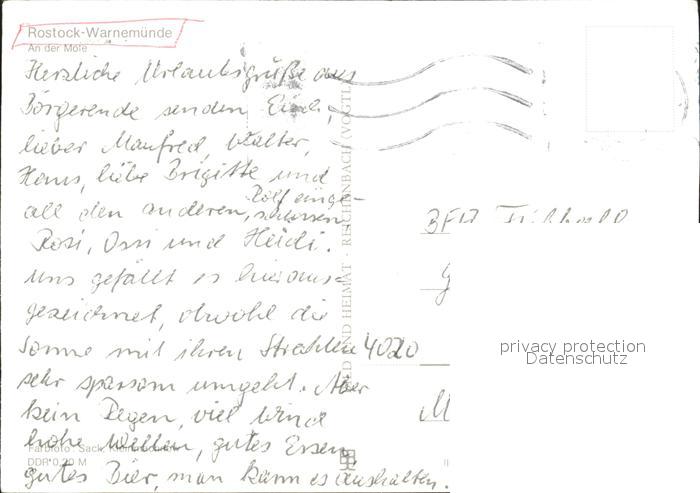 72328070 alte Postkarte Warnemuende Ostseebad Mole postalisch gelaufen Erhaltung siehe scans KatCode: 11110013003000