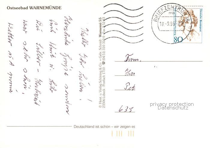 73269335 alte Postkarte Warnemuende Ostseebad Mole Leuchtturm Faehre Hafen Alter Strom Promenade Teepott Hotel Neptun Cafe Restaurant Fachwerkhaeuser postalisch gelaufen Erhaltung siehe scans [FriedD77] KatCode: 11110013003000