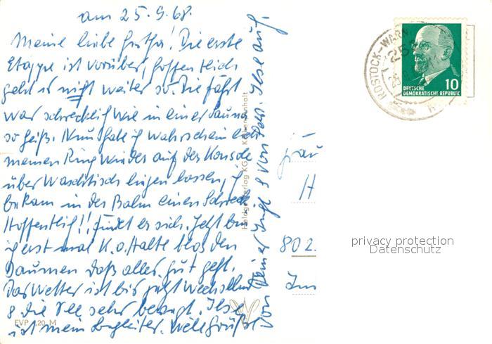 73272038 alte Postkarte Warnemuende Ostseebad Promenade Strand HO Gaststaette Kurhaus Moleneinfahrt Faehre Leuchtturm postalisch gelaufen Erhaltung siehe scans [FriedD77] KatCode: 11110013003000