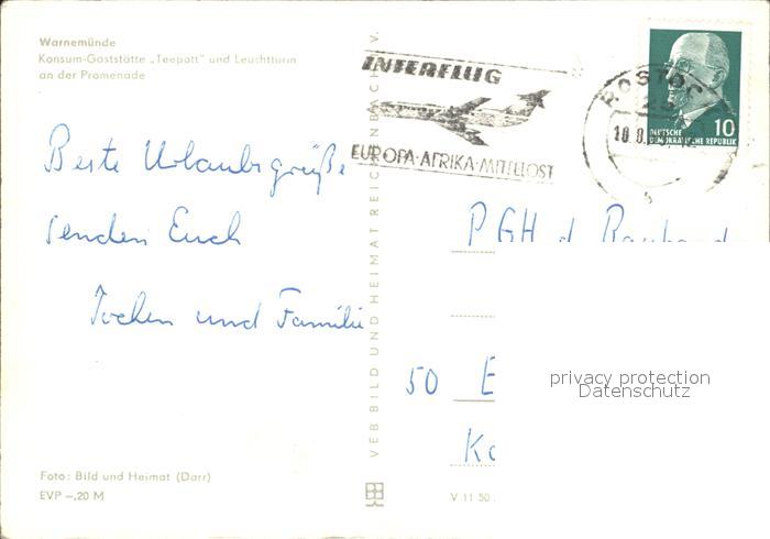 72180069 alte Postkarte Warnemuende Ostseebad Restaurant Teepott Leuchtturm Promenade postalisch gelaufen Erhaltung siehe scans KatCode: 11110013003000