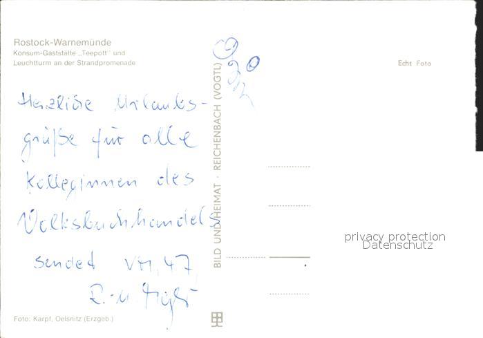 72175011 Warnemuende Ostseebad Restaurant Teepott Leuchtturm postalisch nicht gelaufen Erhaltung siehe scans KatCode: 11110013003000