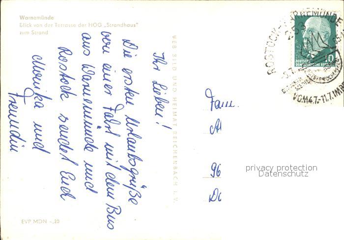 72549058 alte Postkarte Warnemuende Ostseebad Seepromenade Restaurant Strandhaus postalisch gelaufen Erhaltung siehe scans [LiesaD40 kv021box] KatCode: 11110013003000