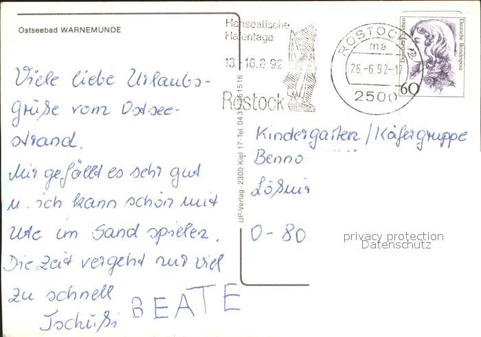 72372558 alte Postkarte Warnemuende Ostseebad Strand postalisch gelaufen Erhaltung siehe scans KatCode: 11110013003000