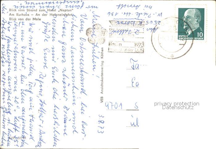 72332092 alte Postkarte Warnemuende Ostseebad Strand Hotel Neptun Kurhaus Hafeneinfahrt Mole postalisch gelaufen Erhaltung siehe scans KatCode: 11110013003000