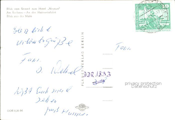 72328241 alte Postkarte Warnemuende Ostseebad Strand Hotel Neptun Kurhaus Hafeneinfahrt Mole postalisch gelaufen Erhaltung siehe scans KatCode: 11110013003000