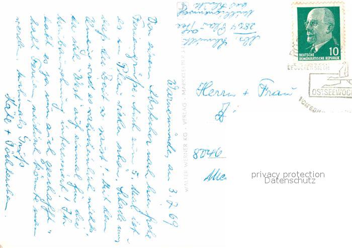 72632376 alte Postkarte Warnemuende Ostseebad Strand Leuchtturm Faehre Mole postalisch gelaufen Erhaltung siehe scans [FriedD77] KatCode: 11110013003000