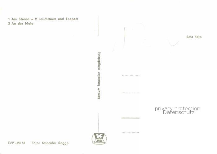 72730414 Warnemuende Ostseebad Strand Leuchtturm Gaststaette Teepott Mole Schlepper Dampfer postalisch nicht gelaufen Erhaltung siehe scans [FriedD77] KatCode: 11110013003000