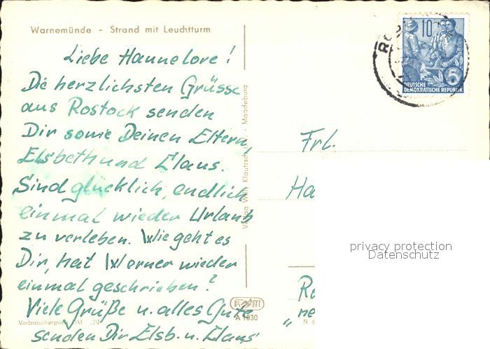 72464524 alte Postkarte Warnemuende Ostseebad Strand mit Leuchtturm postalisch gelaufen Erhaltung siehe scans KatCode: 11110013003000