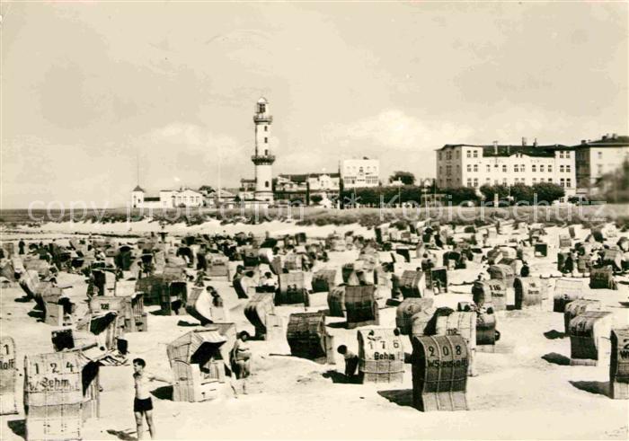72645958 alte Postkarte Warnemuende Ostseebad Strand mit Leuchtturm postalisch gelaufen Erhaltung siehe scans [LiesaD40] KatCode: 11110013003000
