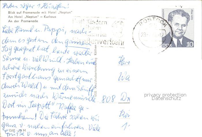 72407880 alte Postkarte Warnemuende Ostseebad Strand Promenade Hotel Neptun Kurhaus postalisch gelaufen Erhaltung siehe scans KatCode: 11110013003000