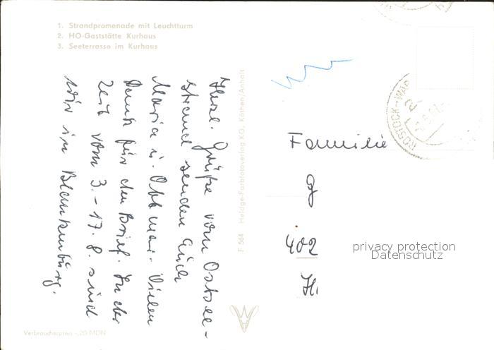 72325140 alte Postkarte Warnemuende Ostseebad Strand Promenade Leuchtturm HOG Kurhaus Seeterrasse postalisch gelaufen Erhaltung siehe scans KatCode: 11110013003000