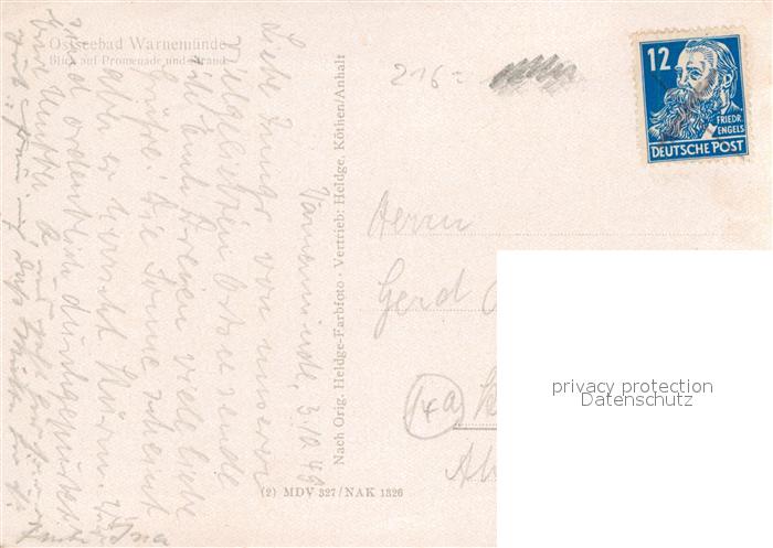 72945069 alte Postkarte Warnemuende Ostseebad Strand Promenade postalisch gelaufen Erhaltung siehe scans [WerneD78] KatCode: 11110013003000