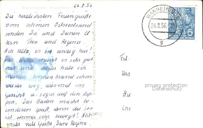 72311587 alte Postkarte Warnemuende Ostseebad Strandhaus postalisch gelaufen Erhaltung siehe scans KatCode: 11110013003000