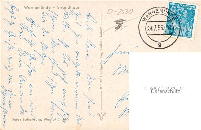 43495969 alte Postkarte Warnemuende Ostseebad Strandhaus postalisch gelaufen Erhaltung siehe scans [FriedD77] KatCode: 11110013003000