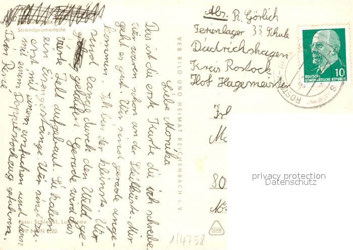 73044198 alte Postkarte Warnemuende Ostseebad Strandpromenade Leuchtturm postalisch gelaufen Erhaltung siehe scans [WerneD78] KatCode: 11110013003000