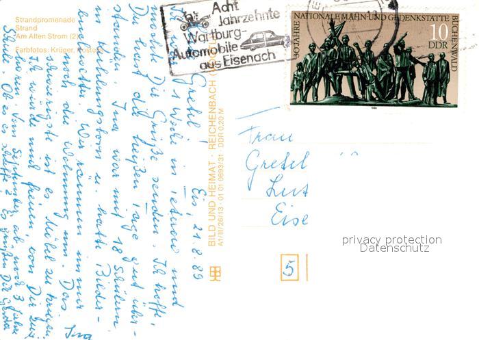 72972736 alte Postkarte Warnemuende Ostseebad Strandpromenade Teepott Leuchtturm Strand Alter Strom Fischkutter postalisch gelaufen Erhaltung siehe scans [FriedD77] KatCode: 11110013003000