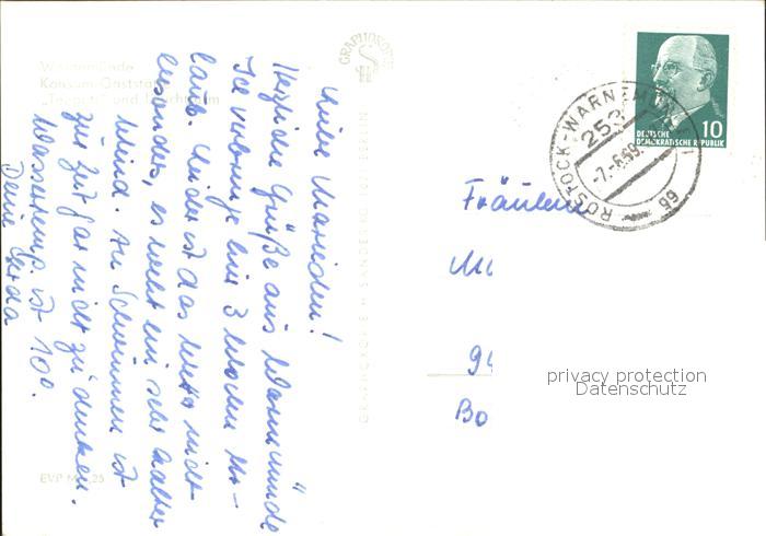 72118926 alte Postkarte Warnemuende Ostseebad Teepott mit Leuchtturm postalisch gelaufen KatCode: 11110013003000