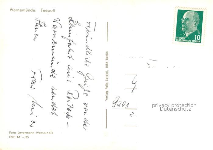 73102625 alte Postkarte Warnemuende Ostseebad Teepott postalisch gelaufen Erhaltung siehe scans [KathaD81] KatCode: 11110013003000