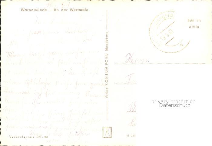 72115965 alte Postkarte Warnemuende Ostseebad Westmole postalisch gelaufen Erhaltung siehe scans KatCode: 11110013003000