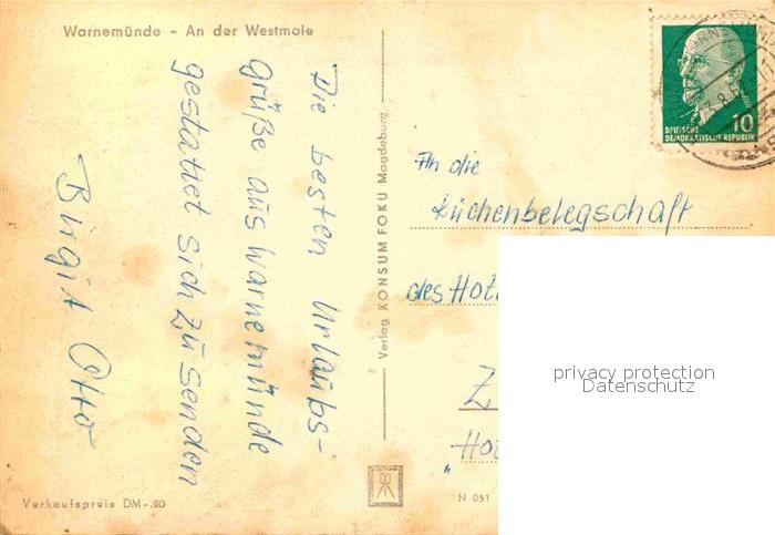 72705152 alte Postkarte Warnemuende Ostseebad Westmole postalisch gelaufen Erhaltung siehe scans [AndreD76] KatCode: 11110013003000