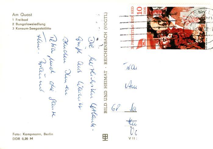 73895221 alte Postkarte Warnitz Freibad Bungalowsiedlung Konsum-Seegaststaette postalisch gelaufen Erhaltung siehe scans [FriedD77] KatCode: 11110012073430