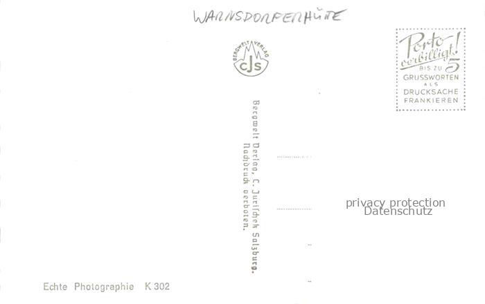 14113124 Warnsdorferhuette 2450m Krimml AT Berghaus Blick gegen Dreiherrenspitze Alpen Venedigergruppe postalisch nicht gelaufen Erhaltung siehe scans [FriedD77] Frie Katcode 11390322050607