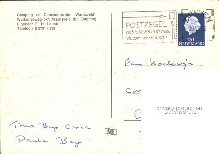 old postcard Warnsveld Gelderland Camping en Caravanterrein postalisch gelaufen Erhaltung siehe scans