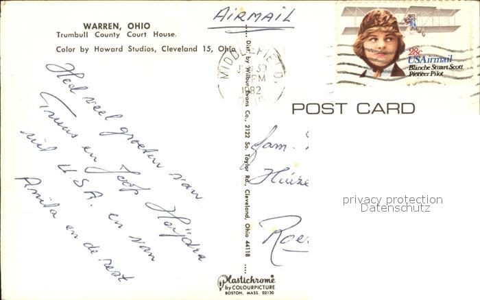 72497783 old postcard Warren Ohio Trumbull Country Court House postalisch gelaufen Erhaltung siehe scans KatCode: 14140370000000