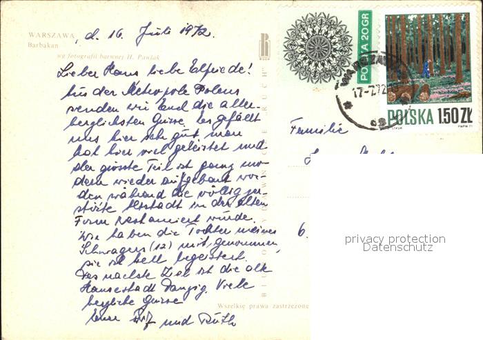 old postcard Warschau Masowien Barbakan postalisch gelaufen Erhaltung siehe scans