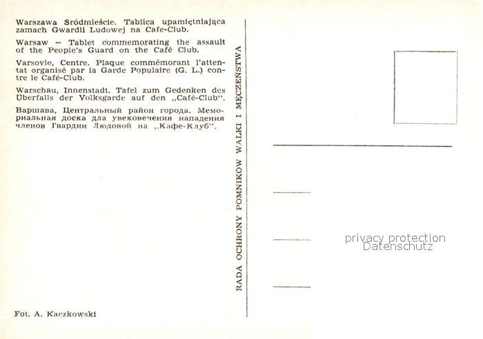 Warschau Masowien Gedenktafel postalisch nicht gelaufen Erhaltung siehe scans [WerneD78]