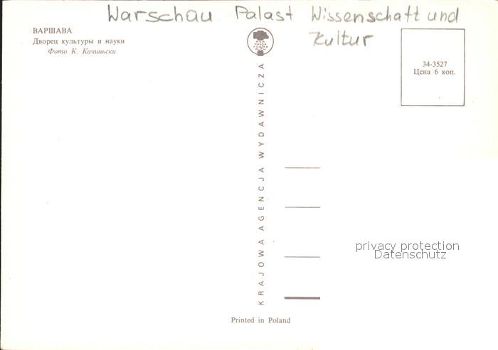 Warschau Masowien Palast Wissenschaft Kultur postalisch nicht gelaufen Erhaltung siehe scans