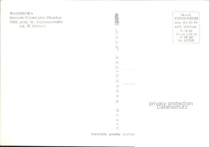 Warschau Masowien Pomnik Fryderyka Chopina postalisch nicht gelaufen Erhaltung siehe scans