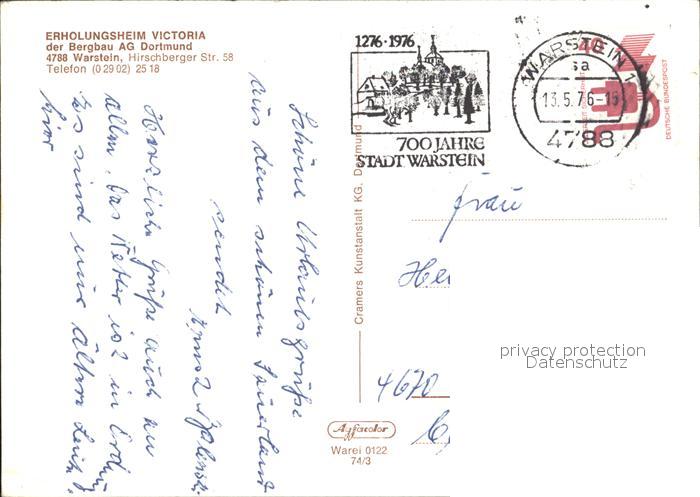 72059203 alte Postkarte Warstein Erholungsheim Victoria der Bergbau AG Dortmund postalisch gelaufen Erhaltung siehe scans KatCode: 11110005974044