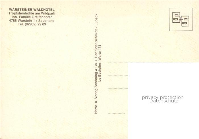 73125722 Warstein Waldhotel Tropfsteinhoehle am Wildpark postalisch nicht gelaufen Erhaltung siehe scans [LiesaD40] KatCode: 11110005974044